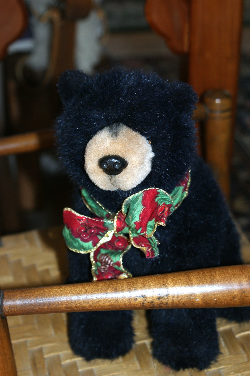 Years ago Prince when he was on a work trip to Minnesota he found and brought this black bear to Puppy . He sits in the living room year round but sports a bow at Christmas.